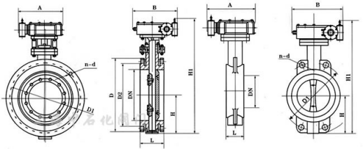Fire signal butterfly valve GD3 741 X Z.Q.C.P.R J- series connection dimensions: